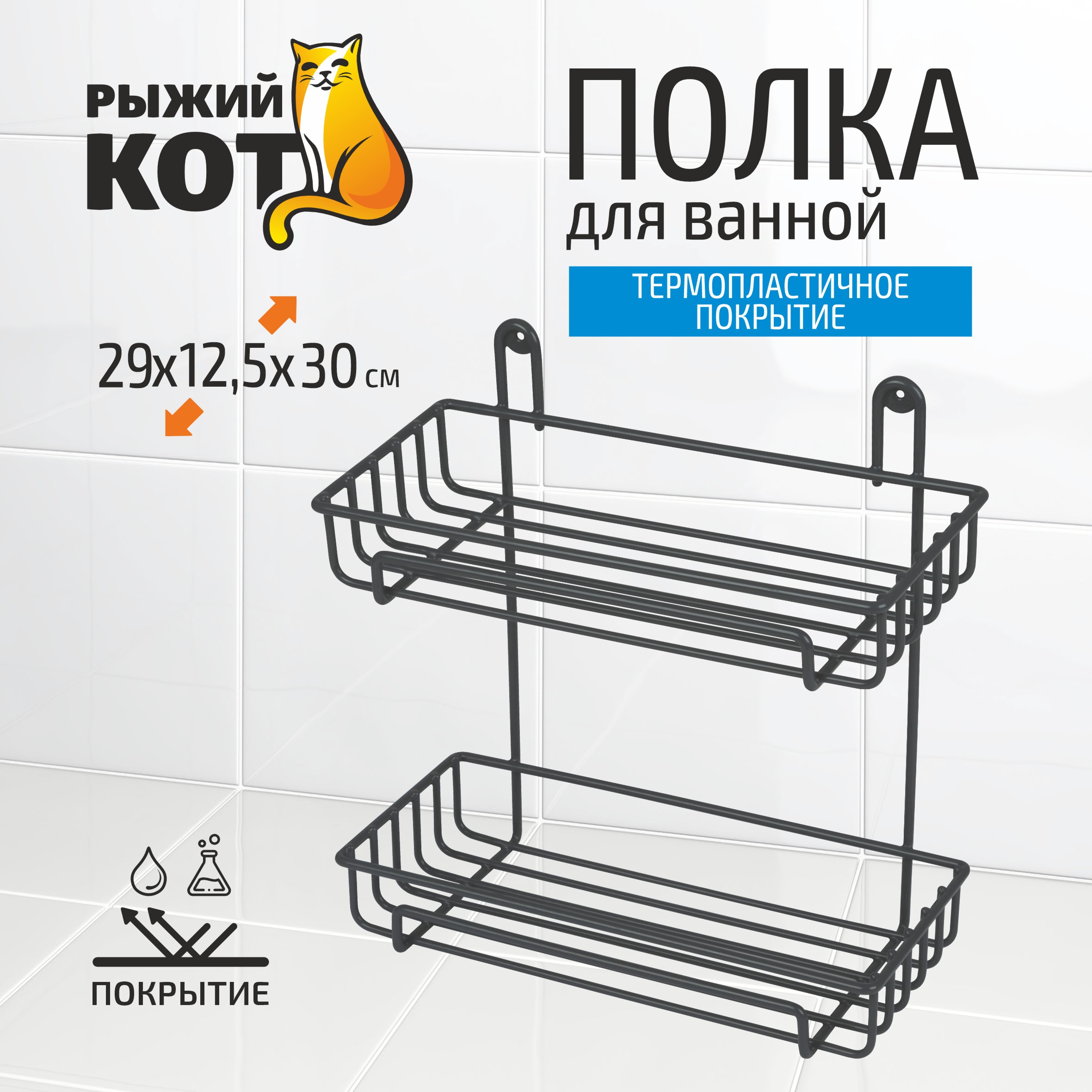 Полка настенная двухъярусная 29*12,5*30 см (термопластичное покрытие) графит